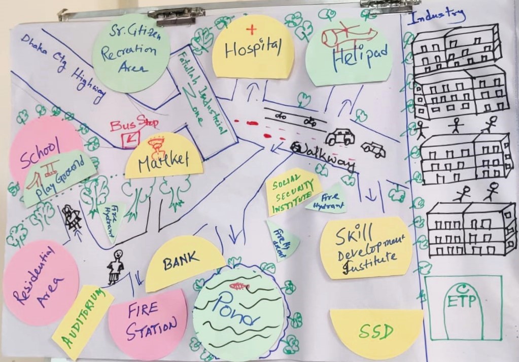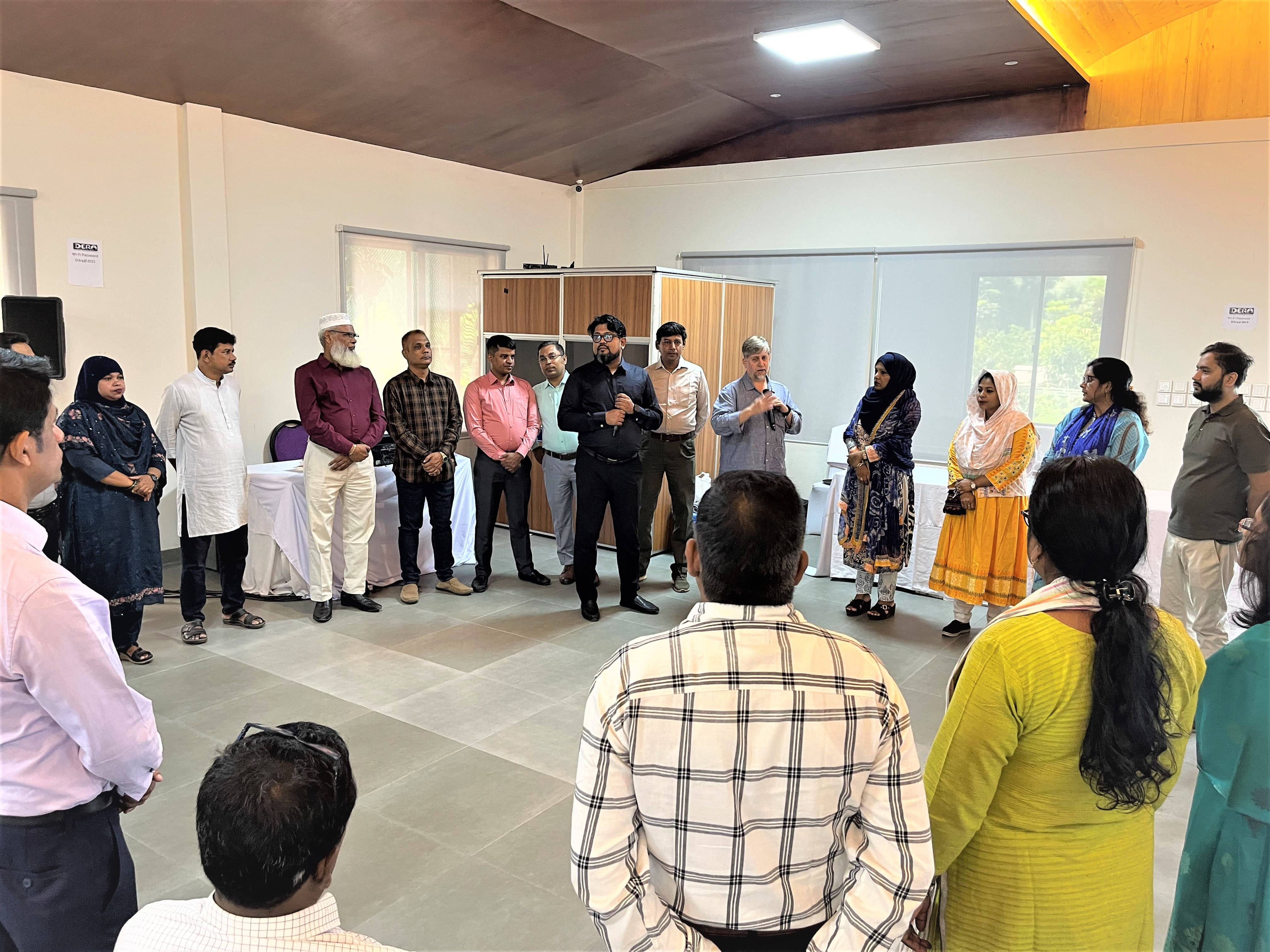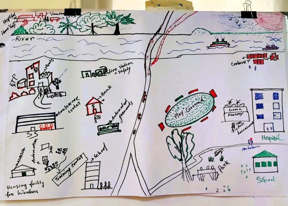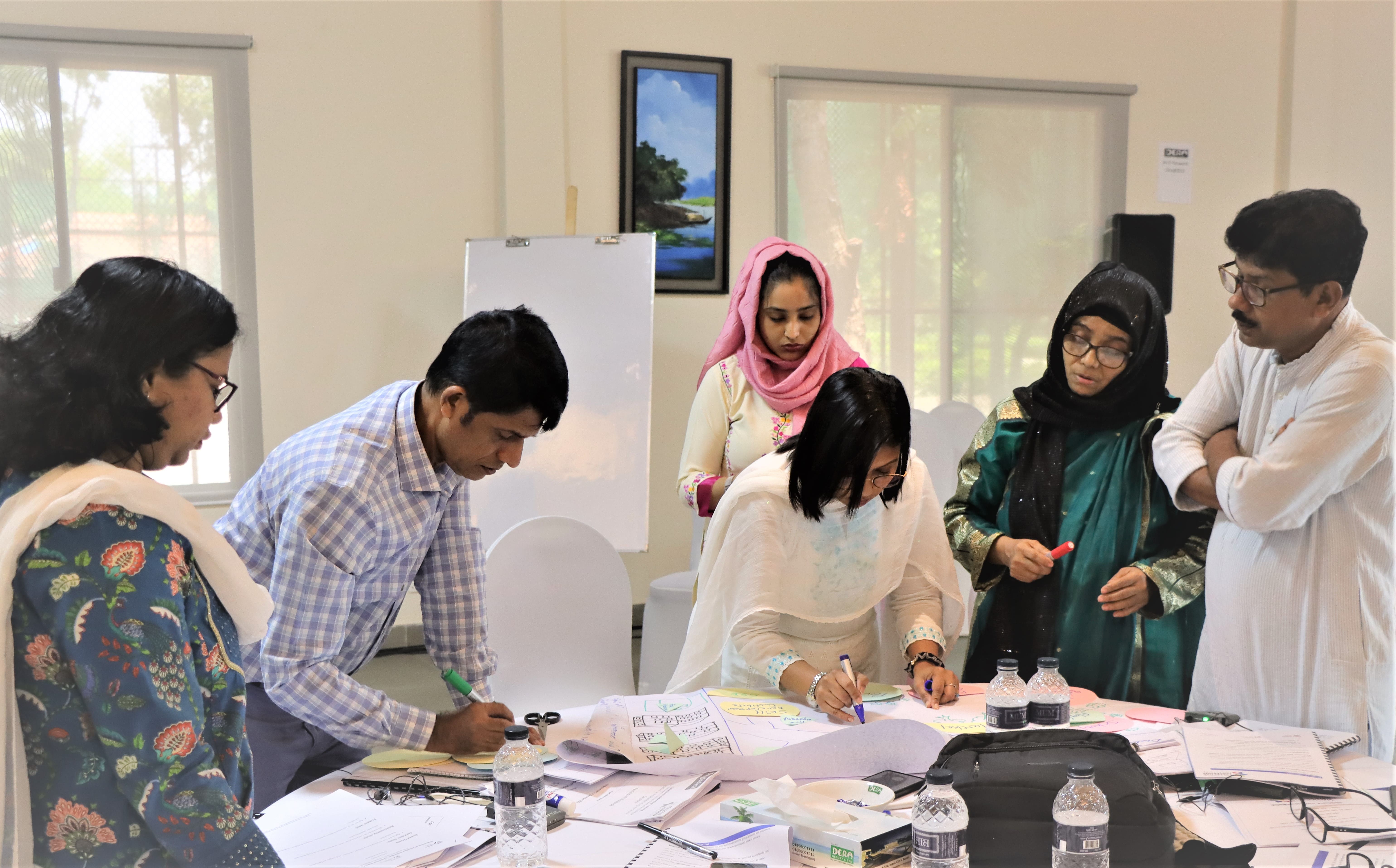 The project “Shurokkha: Advocacy for an Employment Injury Insurance (EII) in Bangladesh” funded by the Laudes Foundation and implemented by GIZ International Services (InS), successfully organized a residential event on Multi-Stakeholder Dialogue (MSD) with the tripartite constituents from 04 to 06 June 2023. At this event, representatives from the Government, Employers’ associations and Workers' associations came to a common understanding of strengthening relationships, collaboration norms and values for achieving future sectoral goals through collective leadership approach and collecting feedback on a draft communication brochure about the EIS Pilot for the RMG factories. This brochure used by factory management, will provide relevant information and support to the workers and/or their dependents in processing claims under the Central Fund and the EIS Pilot. The whole event reflected the four Dialogic Practices of Voice, Listen, Respect and Suspend and the different action modes, which are combinedly known as ‘the art of thinking together’ in the working groups. The participants were grouped in four teams and through a visioning exercise, each team exhibited their vision of a healthy and sustainable RMG sector in Bangladesh in 2030.